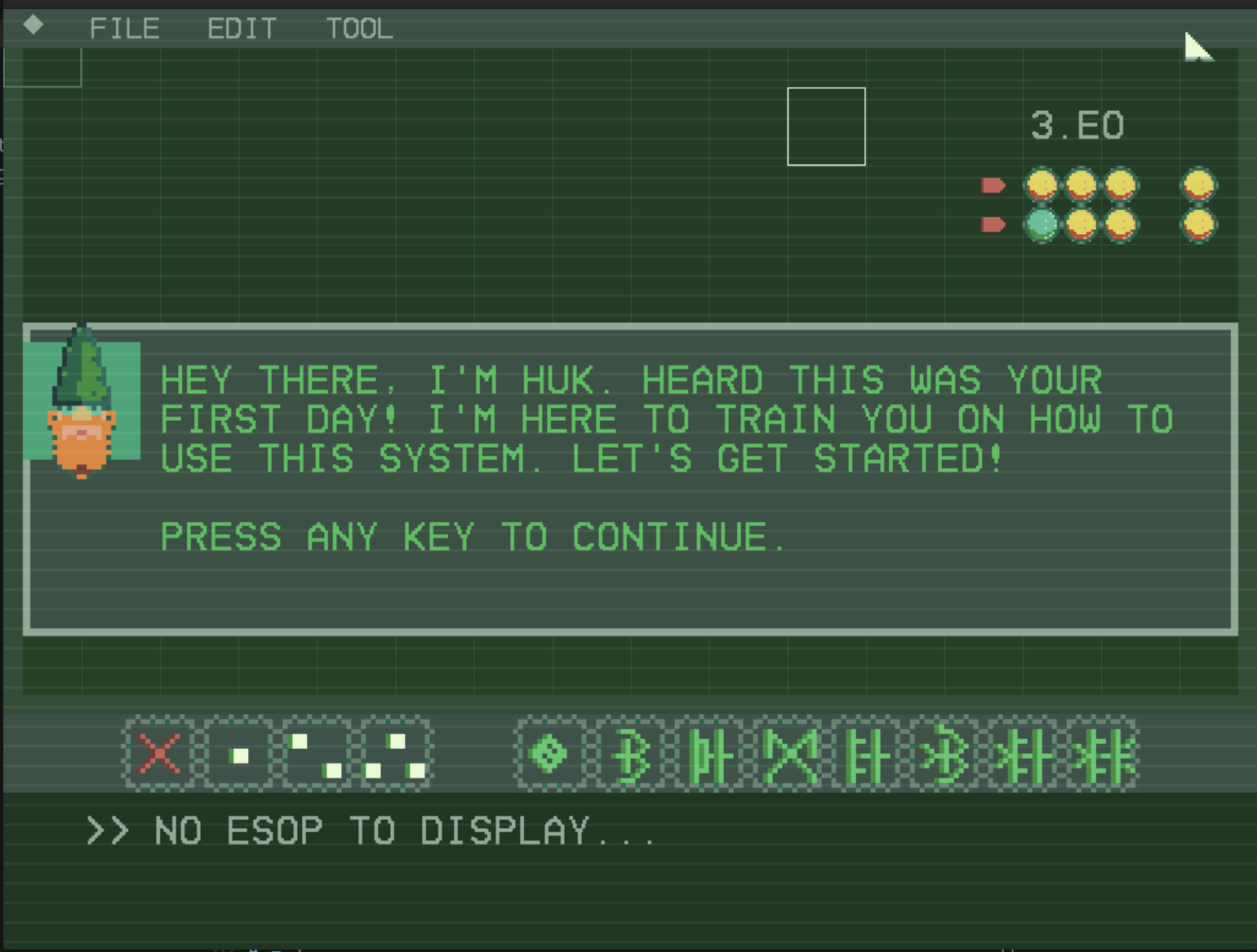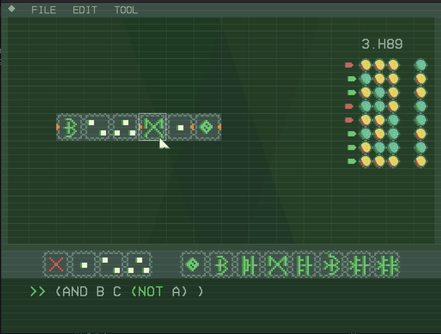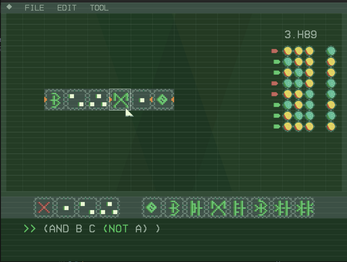 EsoBinaria is a tile-based visual programming game where players solve boolean logic puzzles.